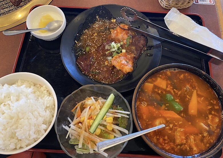 女性に嬉しい、レバーが食べられるホルモンミックスランチは税別780円だからめちゃくちゃお得。ご飯を無しにしちゃえば、糖質制限のランチになちゃいます。その場合は、味噌汁をカルビスープ(+350円)に変更。プロテインたっぷりのスタミナ糖質オフランチに早変わり。お腹にもしっかり溜まります。